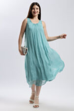 The Zenobia Silk Halter-neck Dress / Aqua Turquoise
