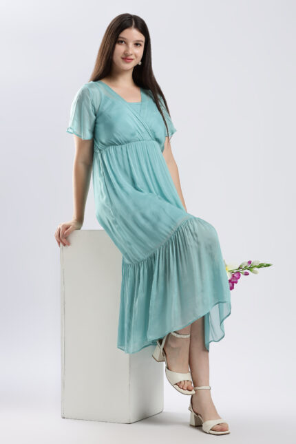 The Esse Silk Maxi Dress / Aqua Turquoise
