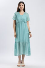 A dreamy maxi with cross over v neck, crafted from shimmery silk and viscose. Beauty – meet kindness!