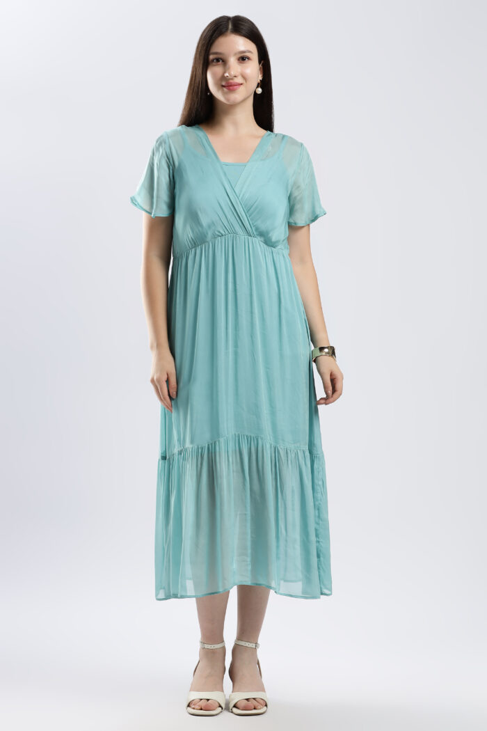 The Esse Silk Maxi Dress / Aqua Turquoise