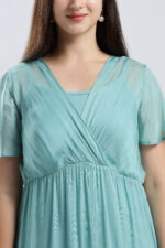 An elegant, comfortable and flattering maxi dress, featuring a cross v neck and hand crafted from soft and luxurious silk and sustainably sourced viscose. The inner elastic layer hugs all your curves just right while the outer shimmery layer of silk flatters every body type with sophistication.
